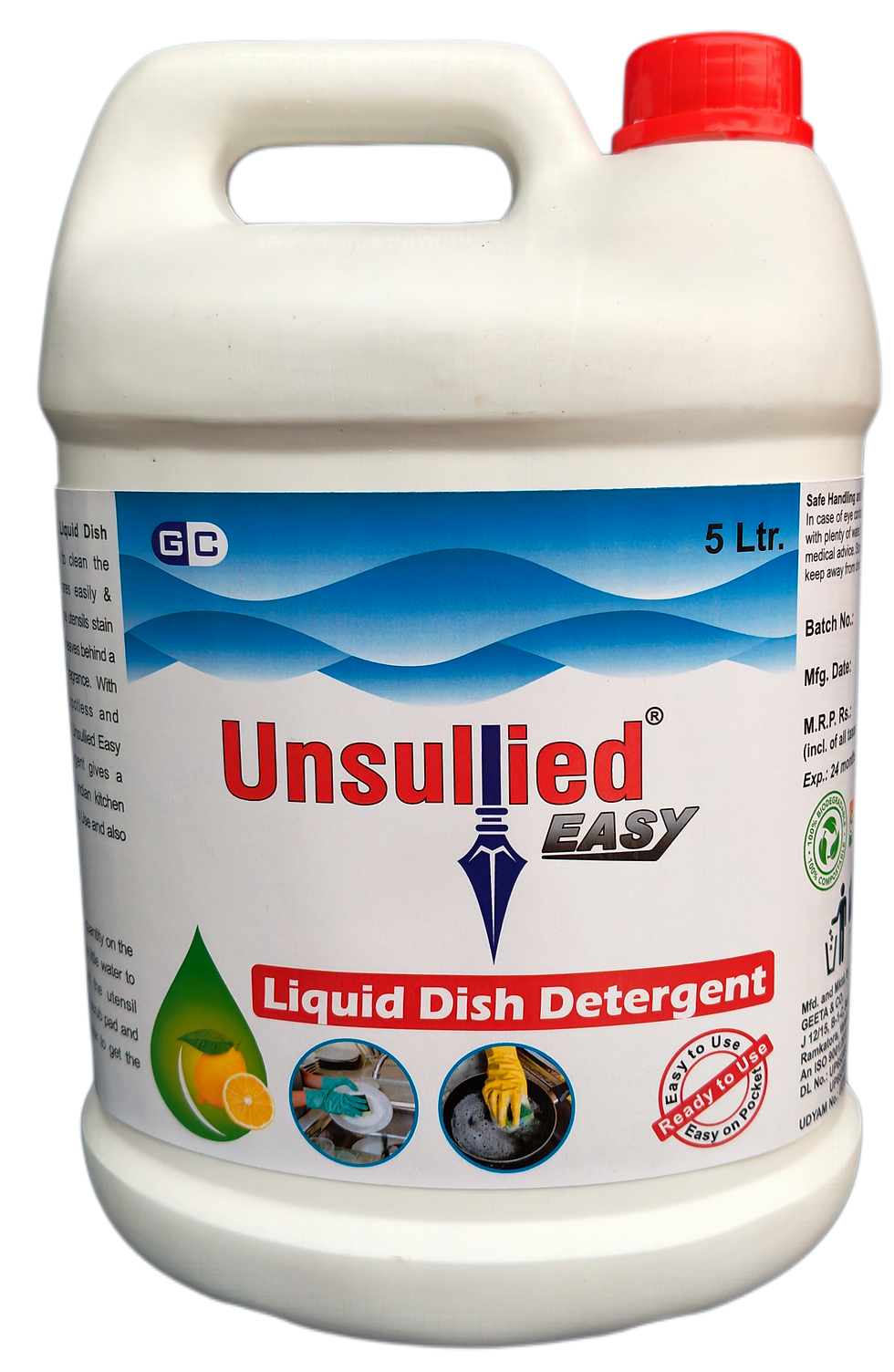 Unsullied Easy Liquid Dish Detergent helps to clean the dishes & cookwares easily & quickly. It makes the utensils stain free & spotless and leaves behind a refreshing lemon fragrance. With high foaming, spotless and gleaming cleaning, Unsullied Easy Liquid Dish Detergent gives a perfect solution for Indian kitchen needs as it is Easy to Use and also Easy on Pocket.